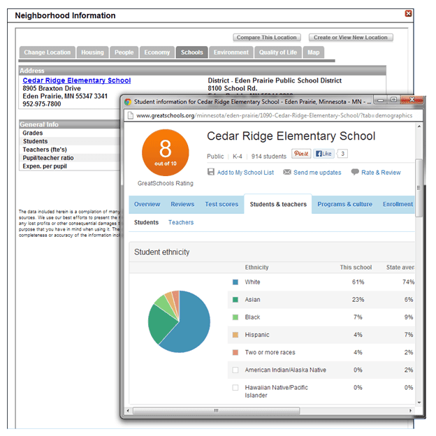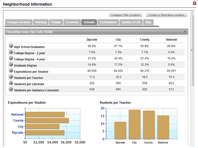 You will have access to detailed information on all nearby schools as well as educational statistics such as expenditures per student, students per teacher, and much more.